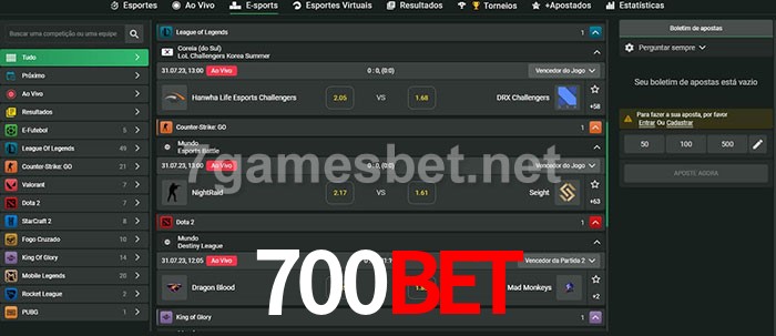 A aposta 700bet oferece aos jogadores a experiência mais conveniente de apostas em eSports!